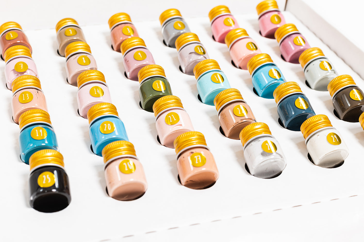 Our custom paint-by-number canvases come in a variety of shapes and sizes for small at-home projects, to medium sized parties, to giant bulk gift orders for your co-workers + customers.