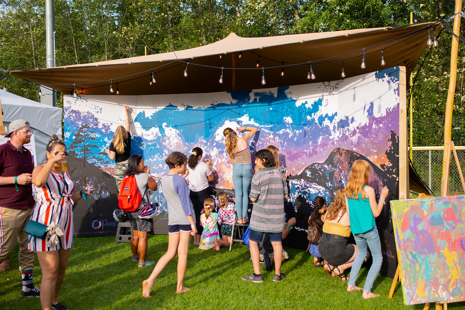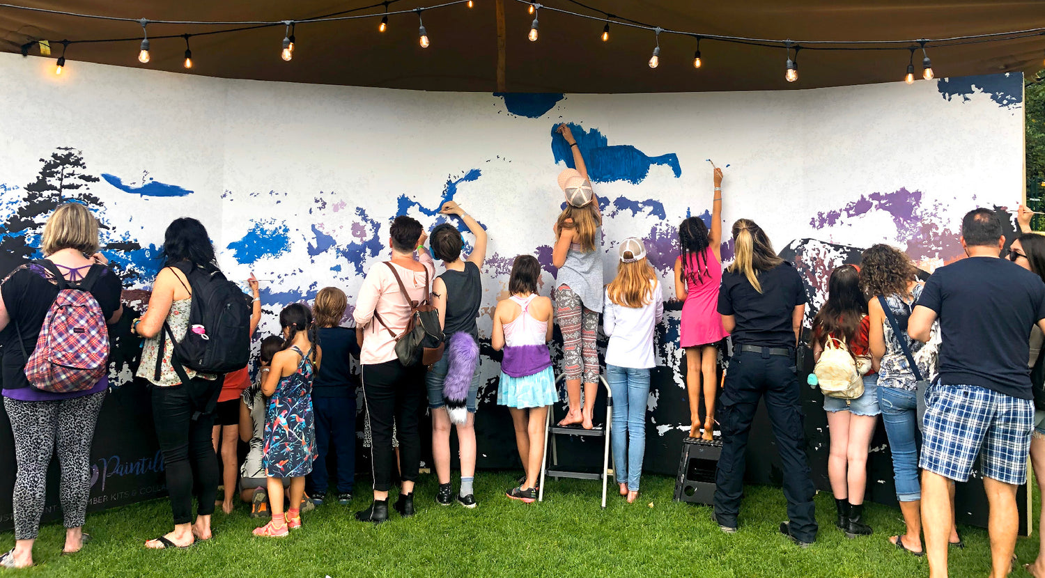Walking by, seeing, and taking selfies with a mural is fun. Painting a mural live with a group of people during an event is next level!