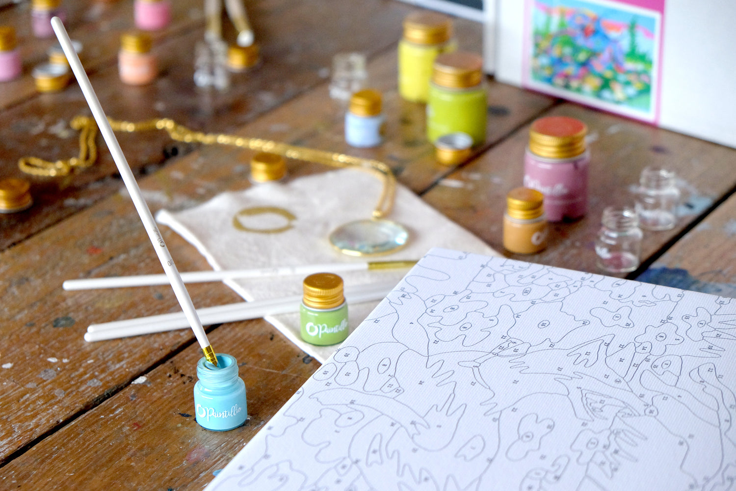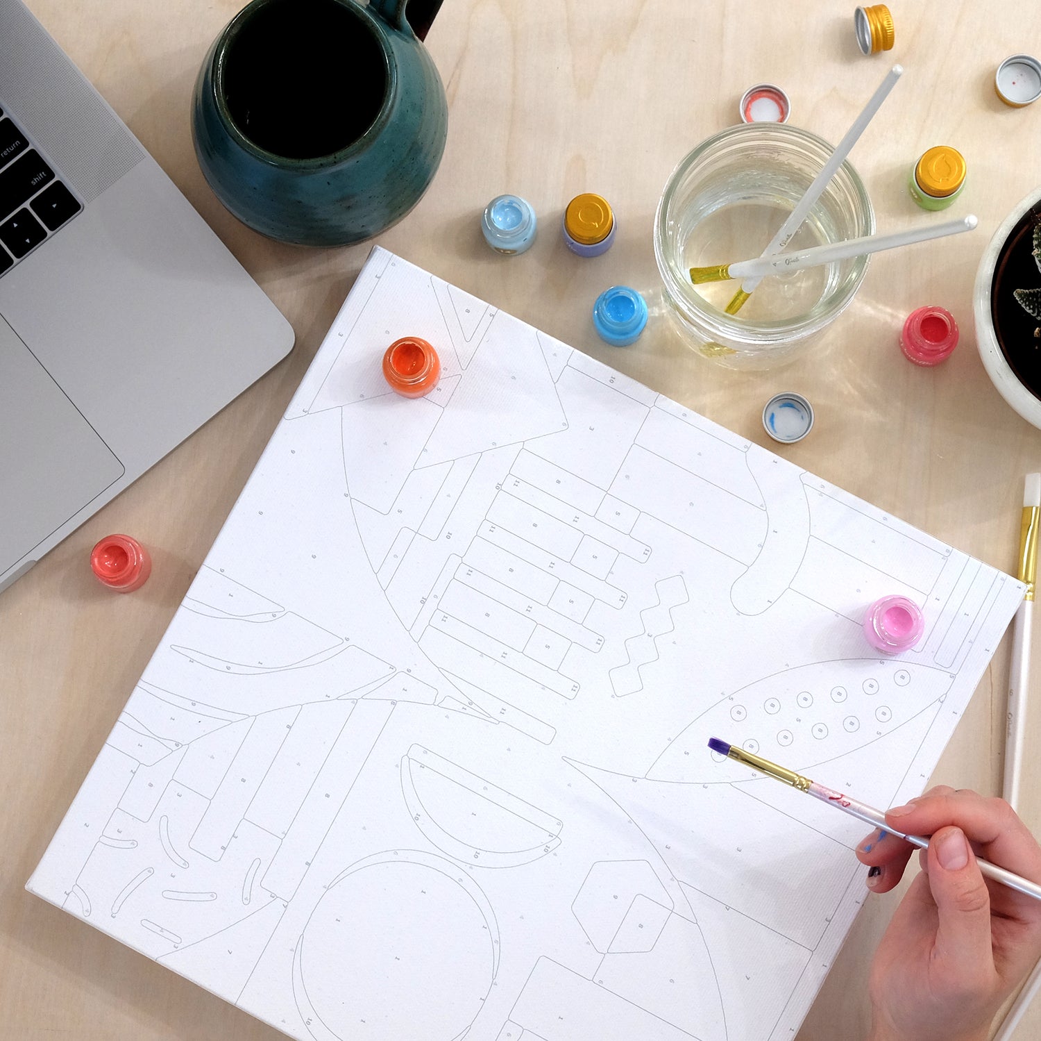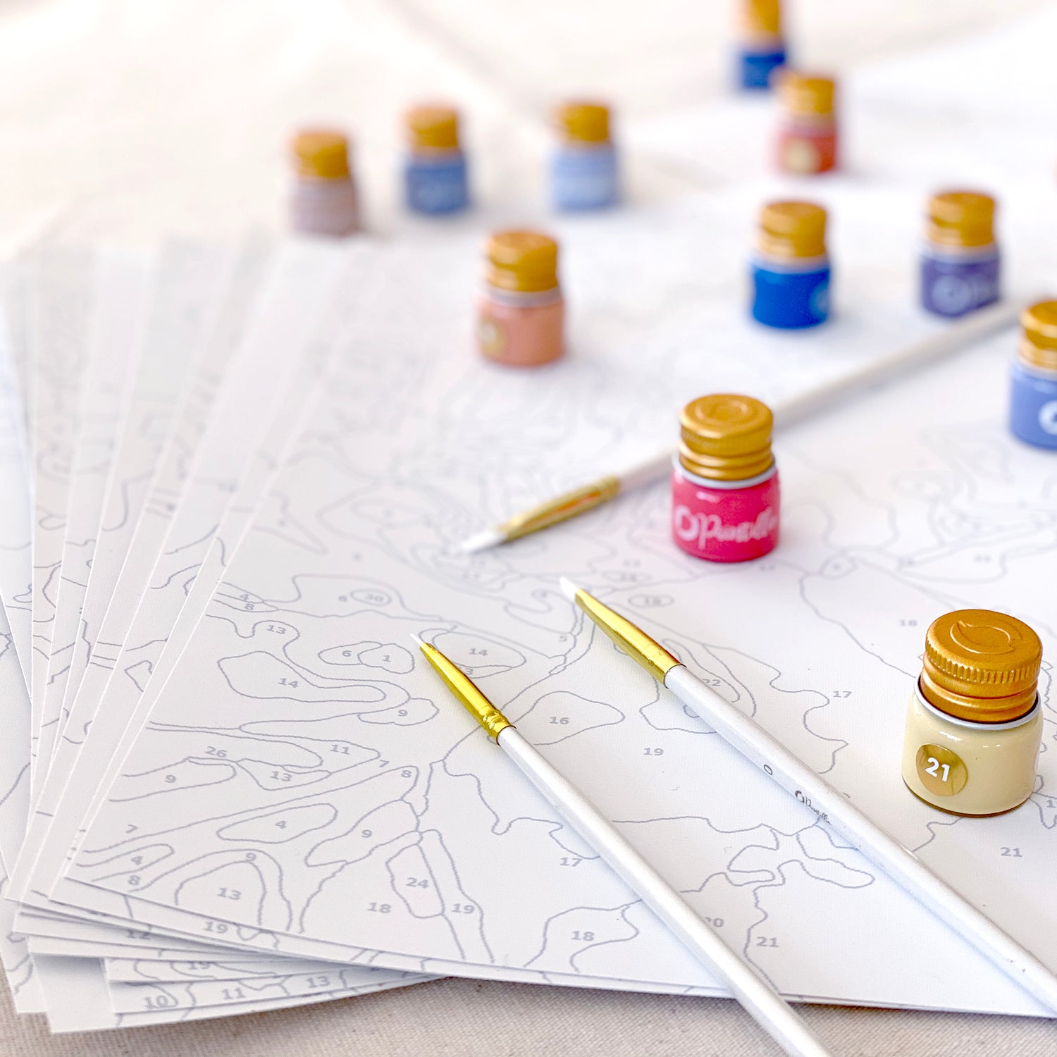 • Numbered set of acrylic paints specific to the image provided